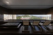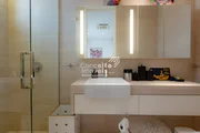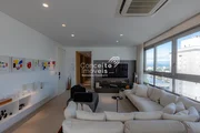 A área social impressiona pela elegância e integração, com salas de estar e jantar voltadas para o mar, criando um cenário único para receber convidados. A cozinha, com marcenaria sob medida assinada, alia estética e funcionalidade em alto nível. Ao todo, são 5 banheiros finamente acabados e 5 vagas de garagem privativas, garantindo total comodidade.