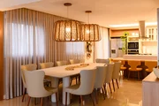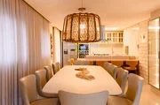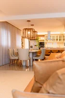 A integração entre sala de estar, jantar e cozinha cria um cenário nobre e acolhedor, ideal para recepções exclusivas e encontros memoráveis 🍷🌊.
